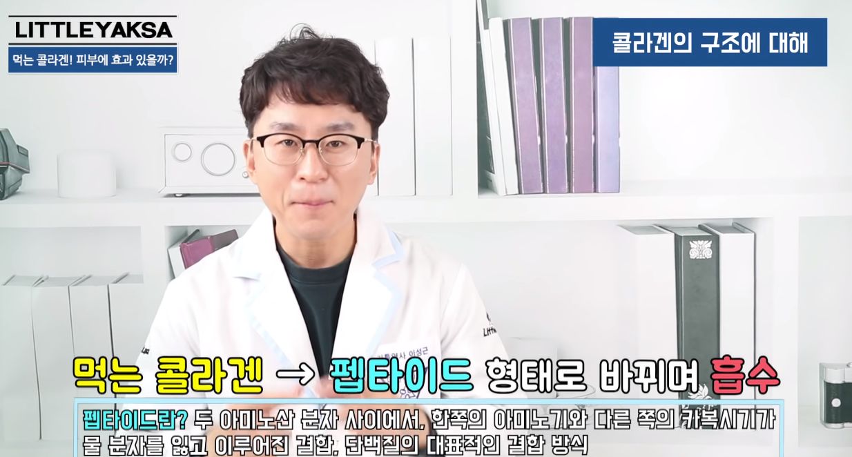 하지만 콜라겐의 분자가 커서 콜라겐의 형태로 흡수되지는 못하고, 소화기관에서 분해되어 버릴 수 밖에 없어요.