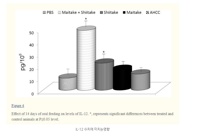 4번째가 베타글루칸 5번째가 AHCC이며 그래프의 크기가 높을 수록 좋습니다.