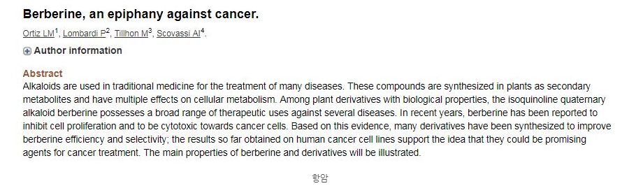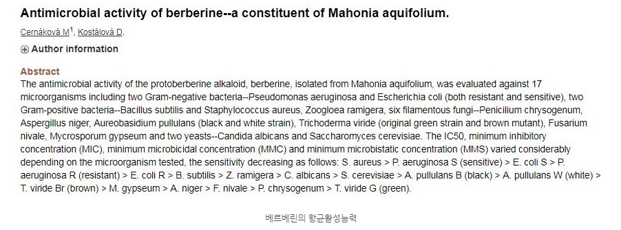 베르베린은 항염능력이 뛰어나 전통적으로 항생제등의 목적으로 사용되었습니다.