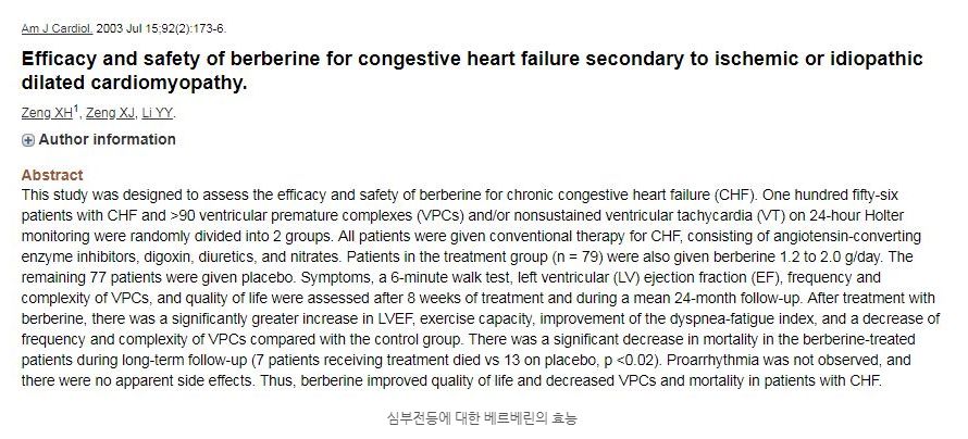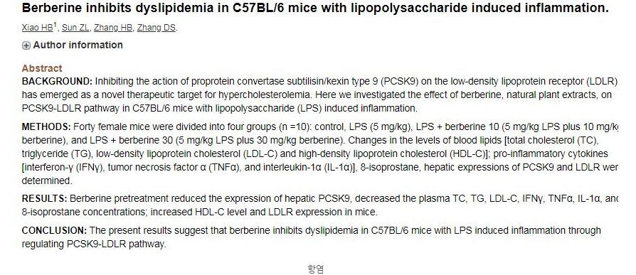 베르베린은 혈당과 콜레스테롤 모두에 긍정적인 효과를 미치는 성분이므로 심혈관 질환의 개선에 도움을 줄 수 잇습니다.
