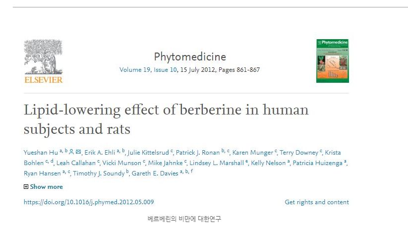 소규모연구에서 베르베린 300mg을 하루 3회씩 투여하자 각종 비만과 관련된 지표에서 개선효과가 있었습니다.