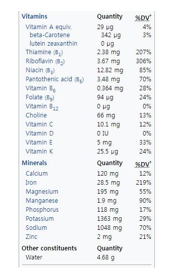 그나마 비타민B계열의 함량이 높다는 정도를 확인할 수 있습니다.